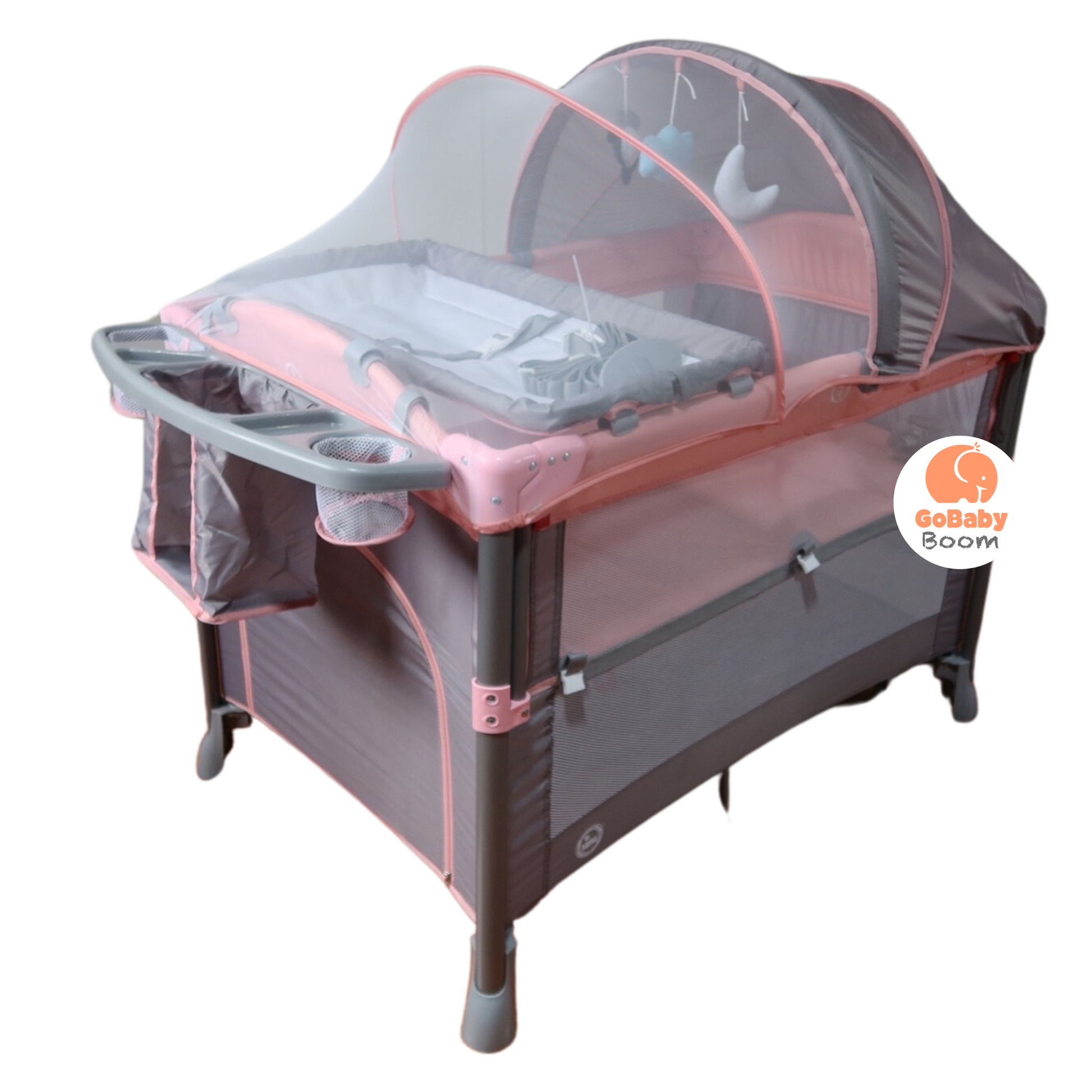 ¡Maximiza tu tiempo de sueño con tu bebé! Corral Colecho Explorer te ofrece dos niveles para ajustarse a la altura de tu cama y correas de sujeción para mayor seguridad. Además, incluye un cambiador y una cosmetiquera para mayor comodidad y un toldillo para protegerlo de insectos. ¡También es perfecto para viajar gracias a su maleta compacta!