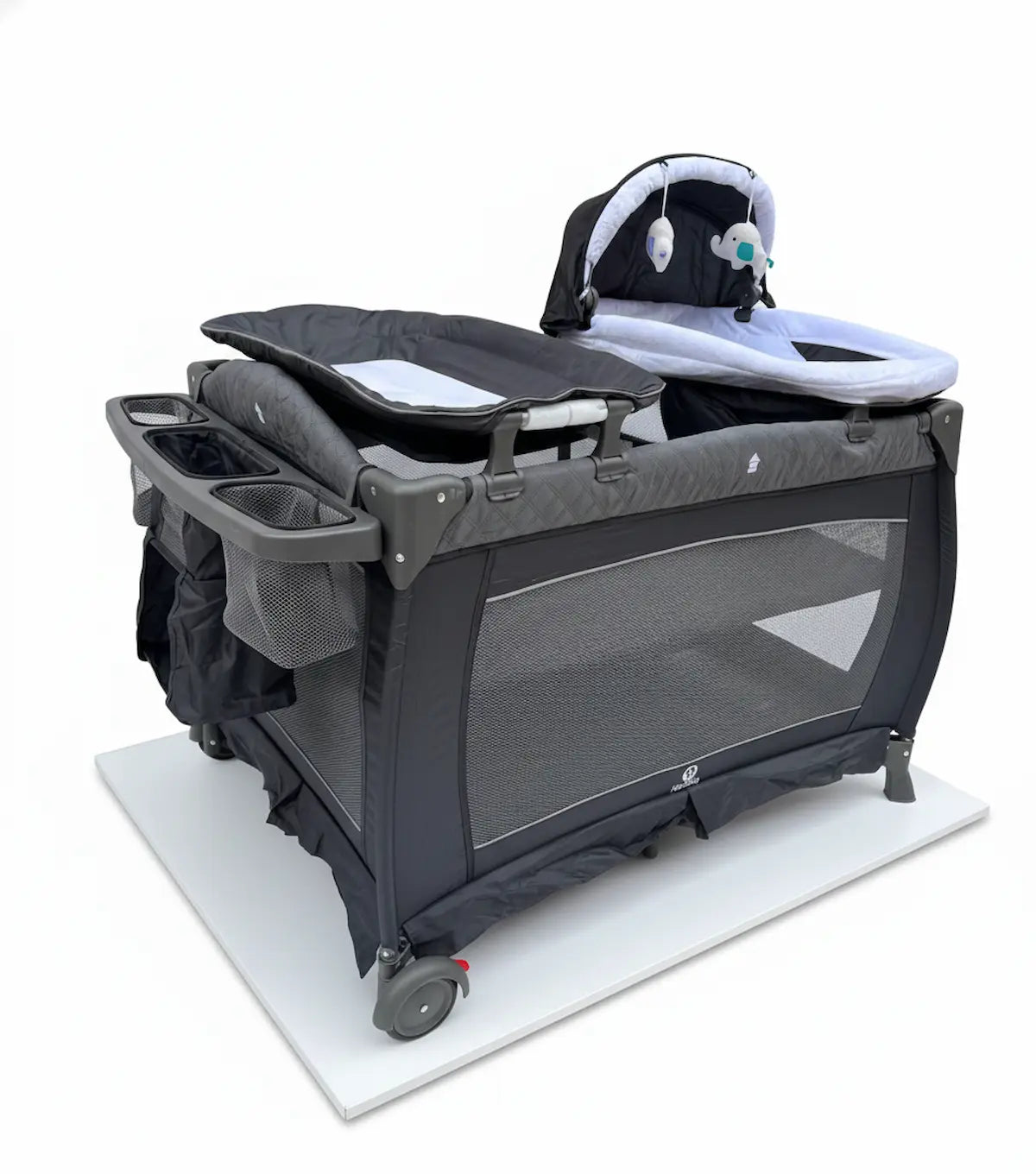 Esta cuna corral es perfecta para los padres en movimiento. Con un cambiador impermeable y un moisés acolchado, su bebé estará cómodo y protegido en todo momento. La cosmetiquera de fácil acceso y amplia le permite tener todo lo que necesita a mano. Incluye una maleta de viaje para mayor conveniencia.